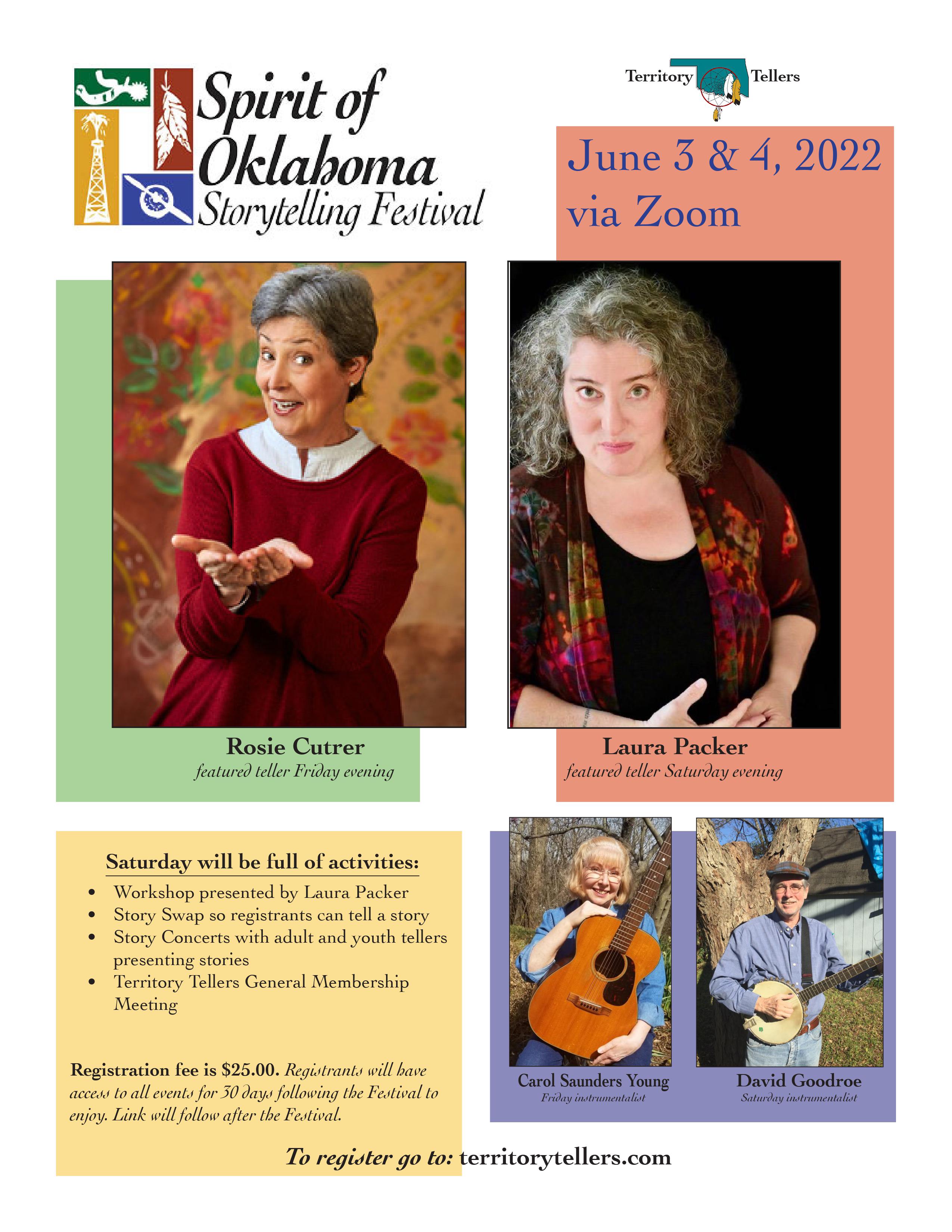 June 2022 marked the sixteenth annual production of this festival. Over 20 performing artists presented during the two days to a total Zoom attendance of over 195, with people tuning in from nine states, including Oklahoma, Texas, Kansas, Missouri, Tennessee, North Carolina, Minnesota, New York and California. Storytellers and musicians performed at a variety of scheduled concerts and an informal story swap.
